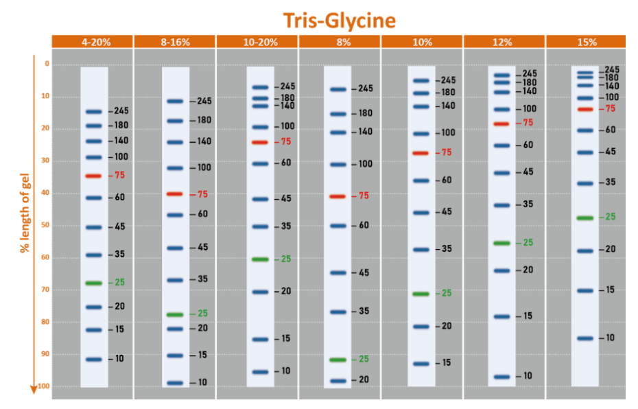 • 25 kDa (green), 75 kDa (red) • เหมาะกับงานโปรตีนช่วงมาตรฐาน |